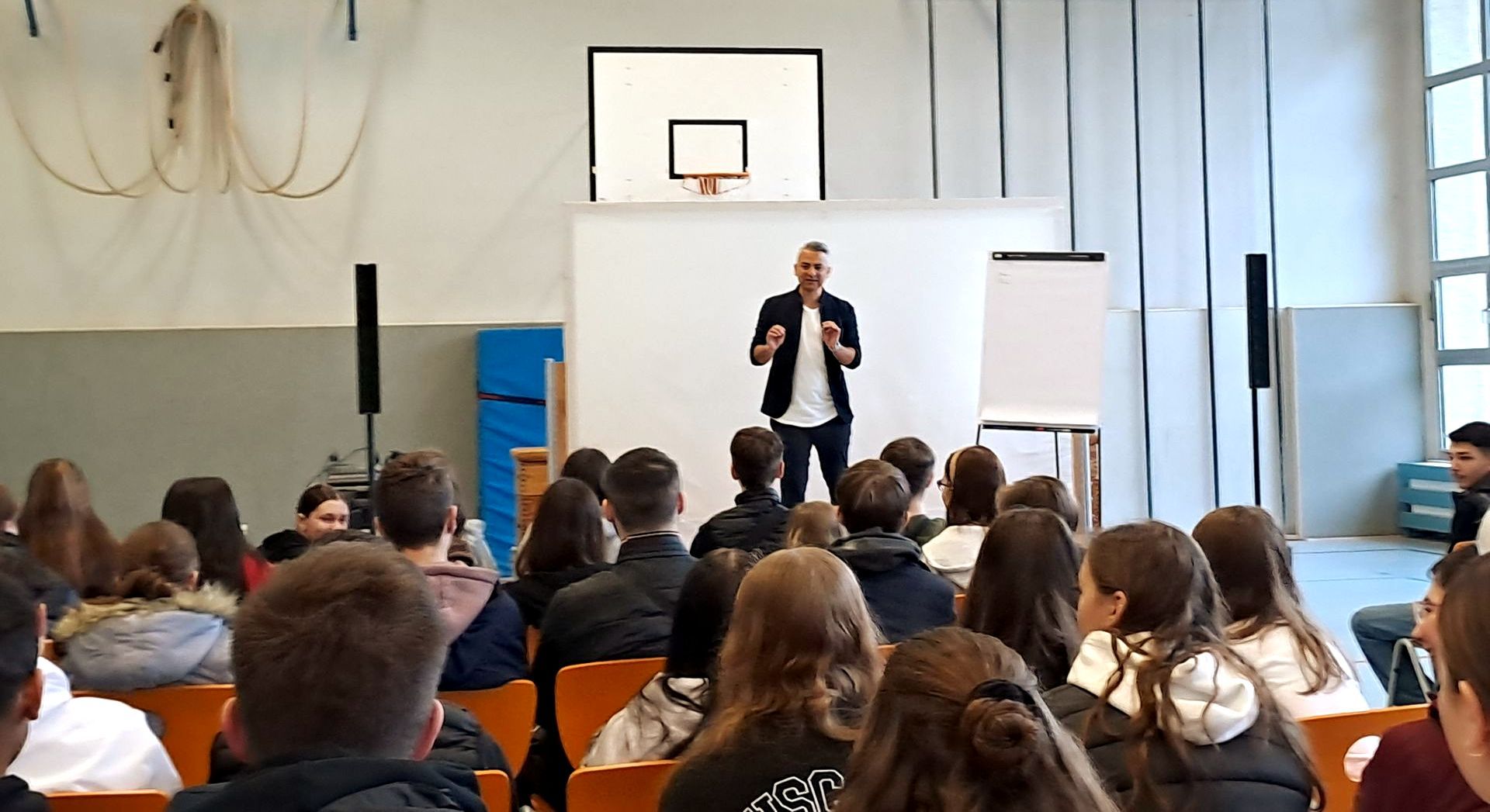Durch seine Authentizität und seine direkten Worte fand er schnell den Zugang zu den Jugendlichen. Ein Schüler merkte an, dass selbst das beste YouTube-Video nicht annähernd so beeindruckend sei wie die ungeschminkte Wahrheit aus dem Munde eines Menschen, der selbst erlebt hat, wovon er spricht. Und ganz nebenbei wurde überdeutlich, wie sehr es den Schulen in der Corona-Zeit u.a. auch daran gefehlt hat, nach draußen zu gehen oder sich eben Kompetenz von außen in die Schule zu holen.
