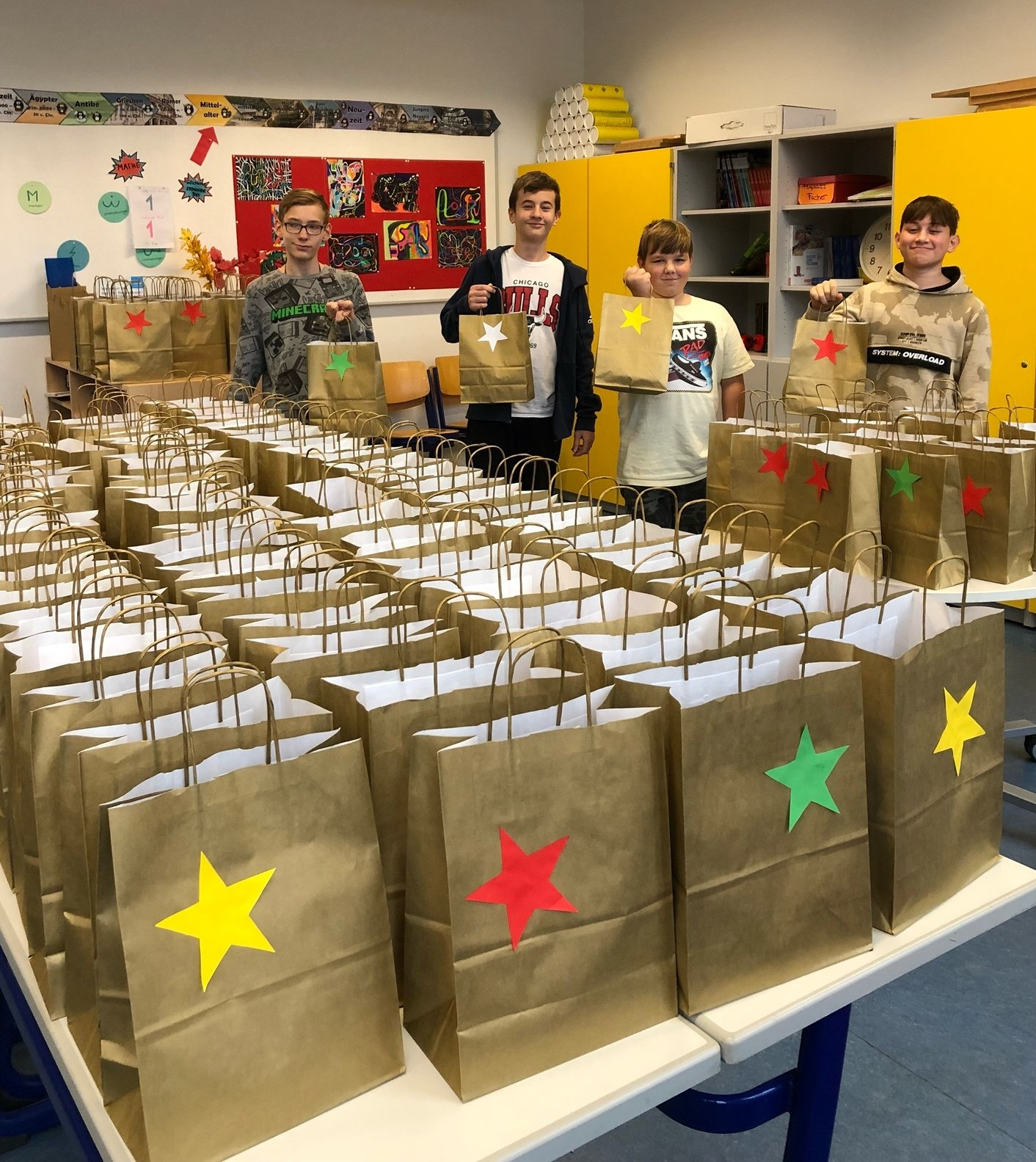 Natürlich besuchte am 6. Dezember traditionell der Nikolaus unsere Grundschüler und beschenkte diese mit verschiedenen Gaben. Die SMV gab sich sehr viel Mühe das Schulhaus zu schmücken, so dass viele Sterne, Engel und weitere weihnachtliche Dekoration eine vorweihnachtliche Stimmung zaubern. An der Nikolausaktion der Ettlinger Schulen nahmen viele Schülerinnen und Schüler teil, so dass viele Grußkarten und Nikoläuse ausgetauscht werden konnten.