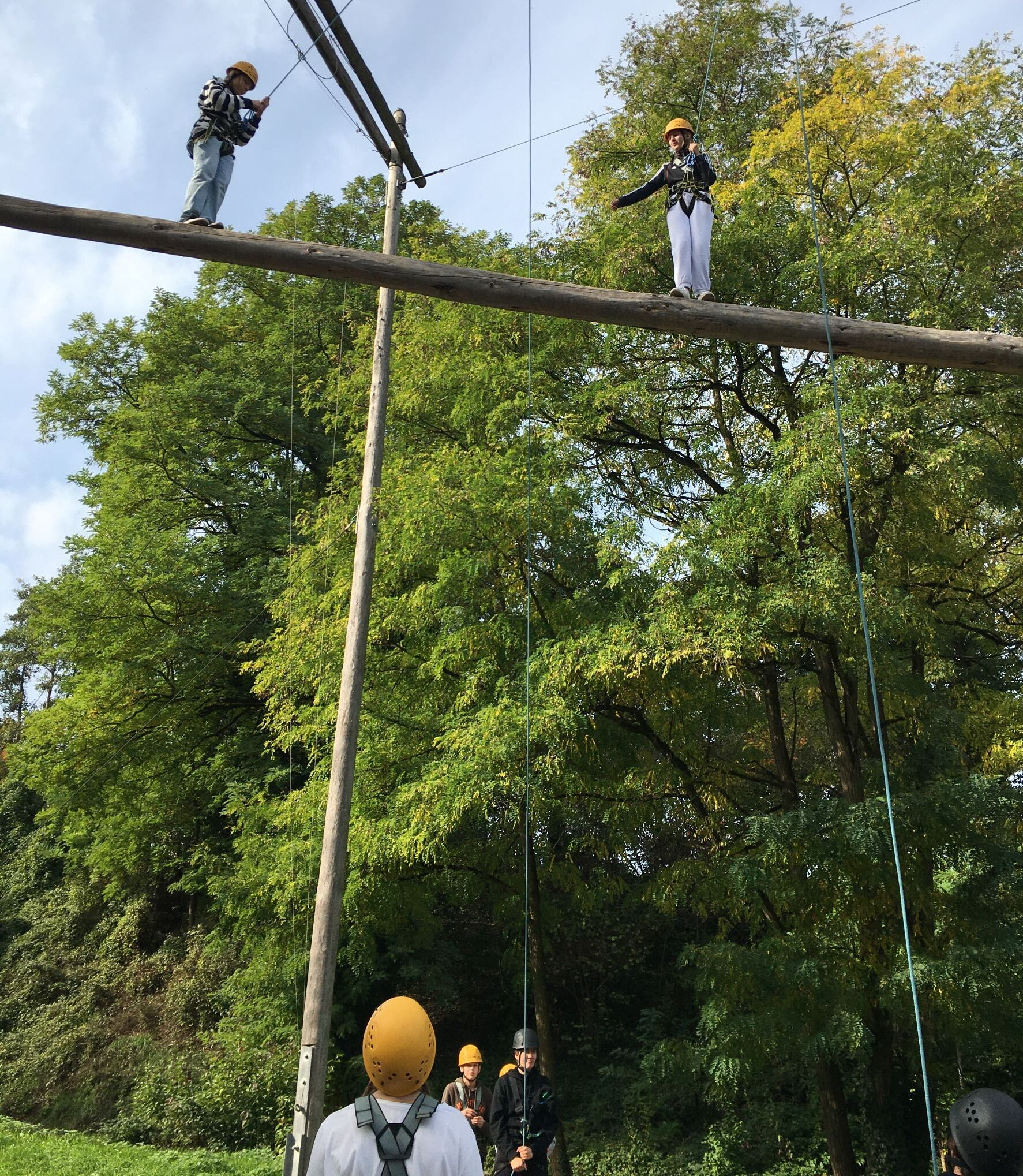 Genau diese Erfahrungen halfen den Jugendlichen dann auch, als sie anschließend in schwindelerregenden Höhen unterwegs waren - selbstverständlich durch Seile gesichert. Hier waren es oft die ansonsten nicht ganz so lauten Schüler, die besondere Courage bewiesen. Aber in jedem Fall war es schön zu sehen, wie sich die Klassenkameraden unterstützten und sich gegenseitig Mut zusprachen. So schafften viele am Ende deutlich mehr, als sie sich zu Beginn selbst zugetraut hätten.