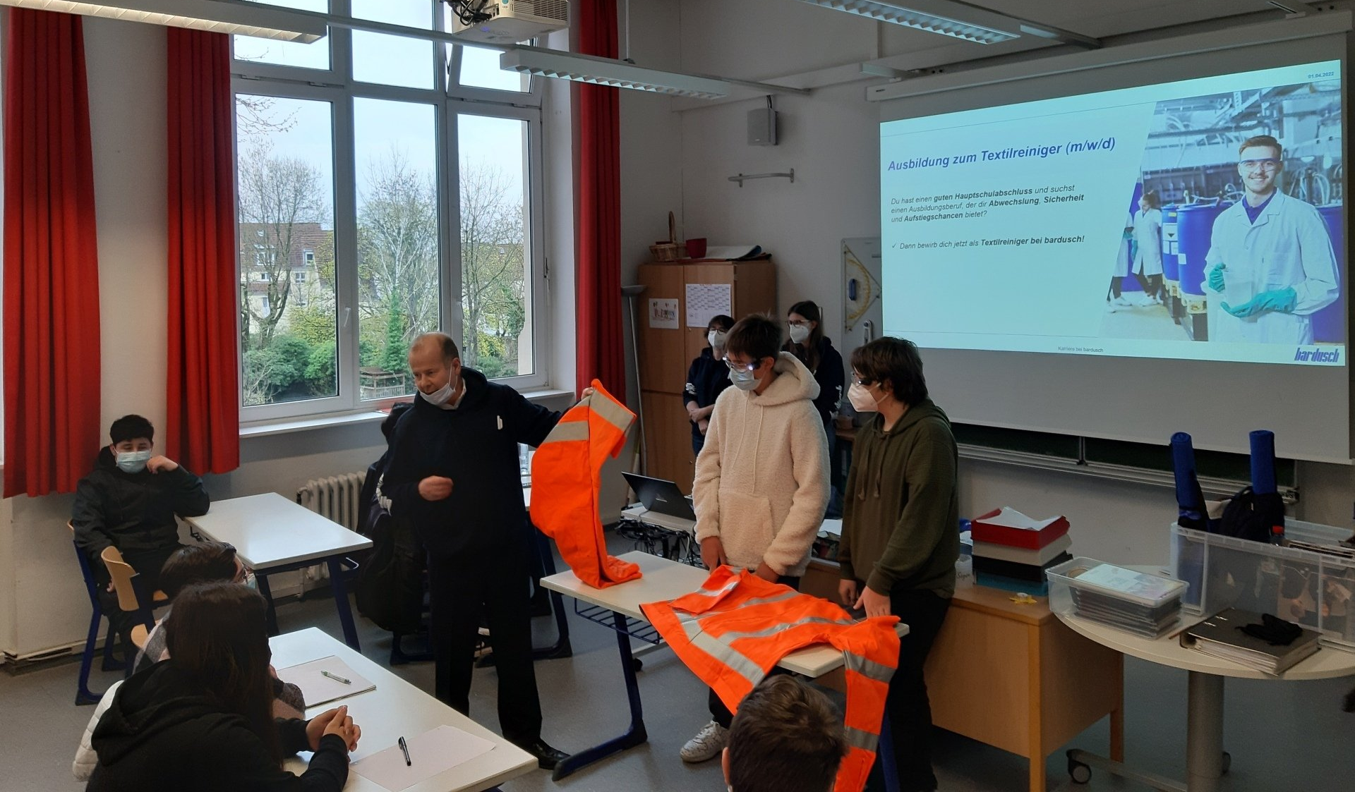 Am Freitag stellte die Firma Bardusch ihr Unternehmen vor und warb mit ihren Azubis und verschiedenen praktischen Challenges für die Ausbildung zum Textilreiniger. Interessierte Schüler werden im Februar zur Unternehmenserkundung eingeladen. Neben weiteren Betriebsbesichtigungen z.B. bei der Firma Storch+Beller in Karlsruhe stehen auch Vorträge des Hotel- und Gastronomieverbands sowie von der Bundeswehr auf dem Programm. Wer statt einer Ausbildung doch noch länger die Schulbank drücken möchte, der kann sich bei einer Sprechstunde von einem Berufsschullehrer individuell an der Schillerschule beraten lassen.